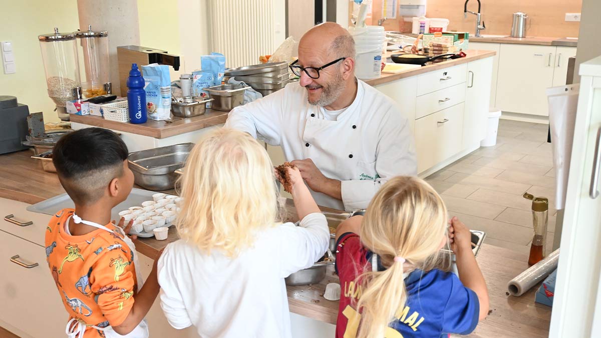 Das Besondere an unserer Kindertagesstätte ist, dass sie im gleichen Gebäude wie eine moderne Senioreneinrichtung untergebracht ist, mit der sie ein in der Region einzigartiges intergeneratives Konzept verbindet. In und um das Haus gibt es Raum und Gelegenheit, damit sich Jung und Alt in gemeinsamen Projekten oder einfach zwanglos begegnen können. So werden Jahresfeste und Veranstaltungen gemeinsam gefeiert, es wird regelmäßig zusammen gesungen und gelacht, gebacken, gebastelt, gemalt, die Senior*innen nehmen am Tagesgeschehen der Kita teil oder die Kinder nehmen mit den pädagogischen Fachkräften am Programm in der Pflegeeinrichtung teil.